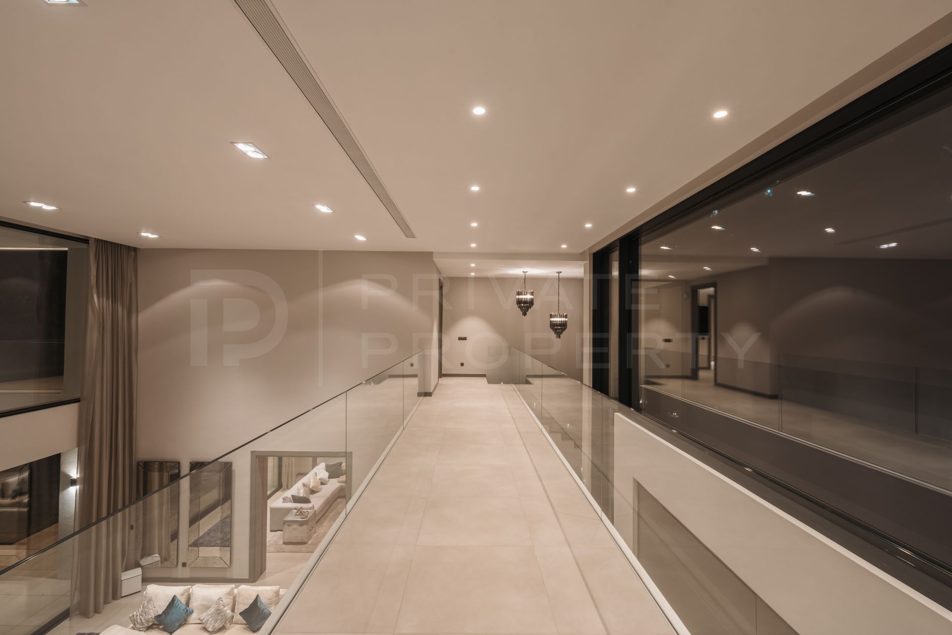 Large south-facing windows capture the stunning panoramic views while filling the home with natural light. Modern features throughout include electric blinds, a state-of-the-art alarm system and an automatic irrigation system. The fully fitted kitchen with top-tier appliances adds a touch of convenience and sophistication.