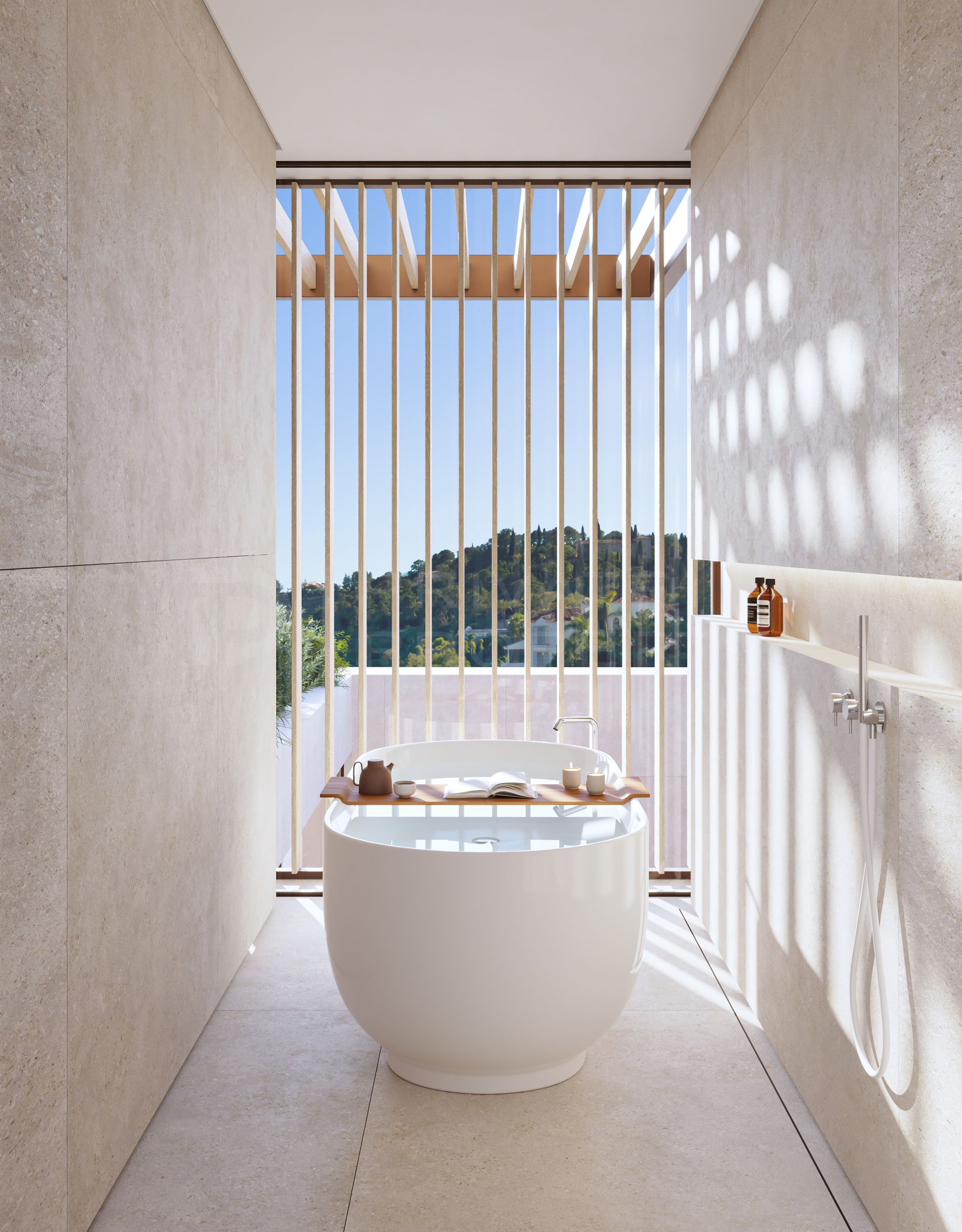 Designed as a high-spec architectural residence, the property combines generous interior volumes with carefully integrated outdoor living spaces, creating a seamless connection between the home and its natural surroundings. Inspired by the architectural philosophy of Arthur Casas, the villa reflects a design approach rooted in harmony with nature. Organic tones, soft lines, and materials have been selected to complement the landscape, allowing the property to feel like a natural extension of its environment. This concept is evident throughout the home, where light, space and proportion are carefully balanced to create a calm and functional living experience.
