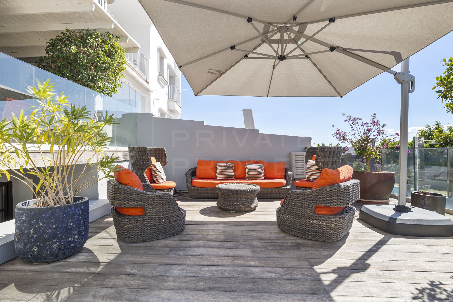 Located in the sought-after community of La Perla de la Heredia, on the Ronda road near Marbella, this exceptional five bedroom townhouse offers a blend of comfort, style, and convenience. South to west orientated, the property enjoys sunlight throughout the day. Recently partly renovated, it provides a modern yet warm atmosphere in a prime location close to all amenities, golf courses, and the town center of San Pedro, with the beach just a 10 to 15-minute drive away.