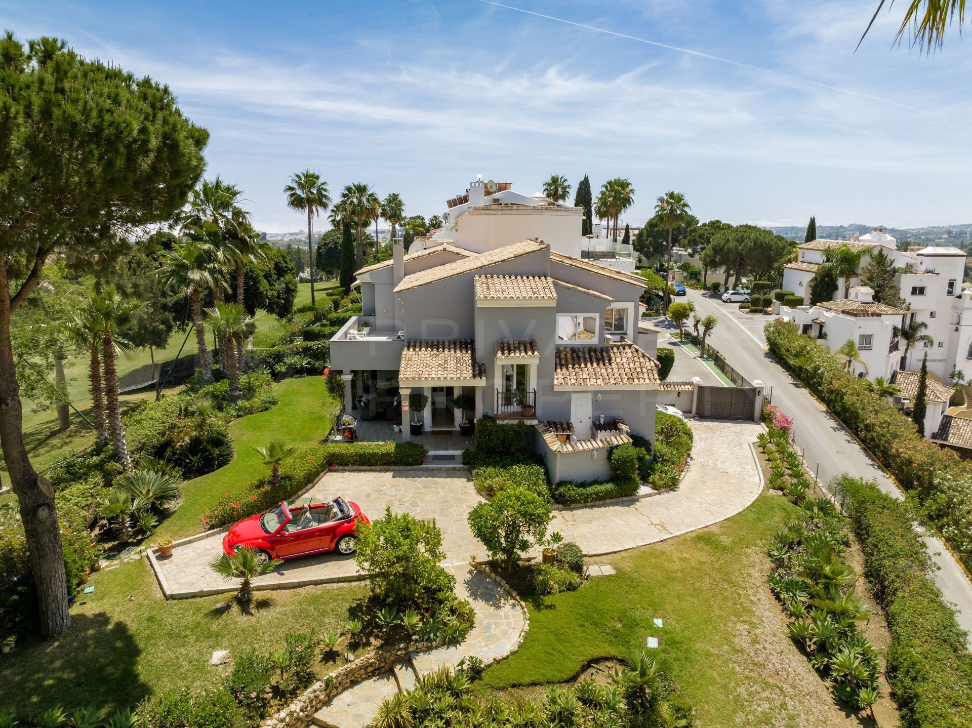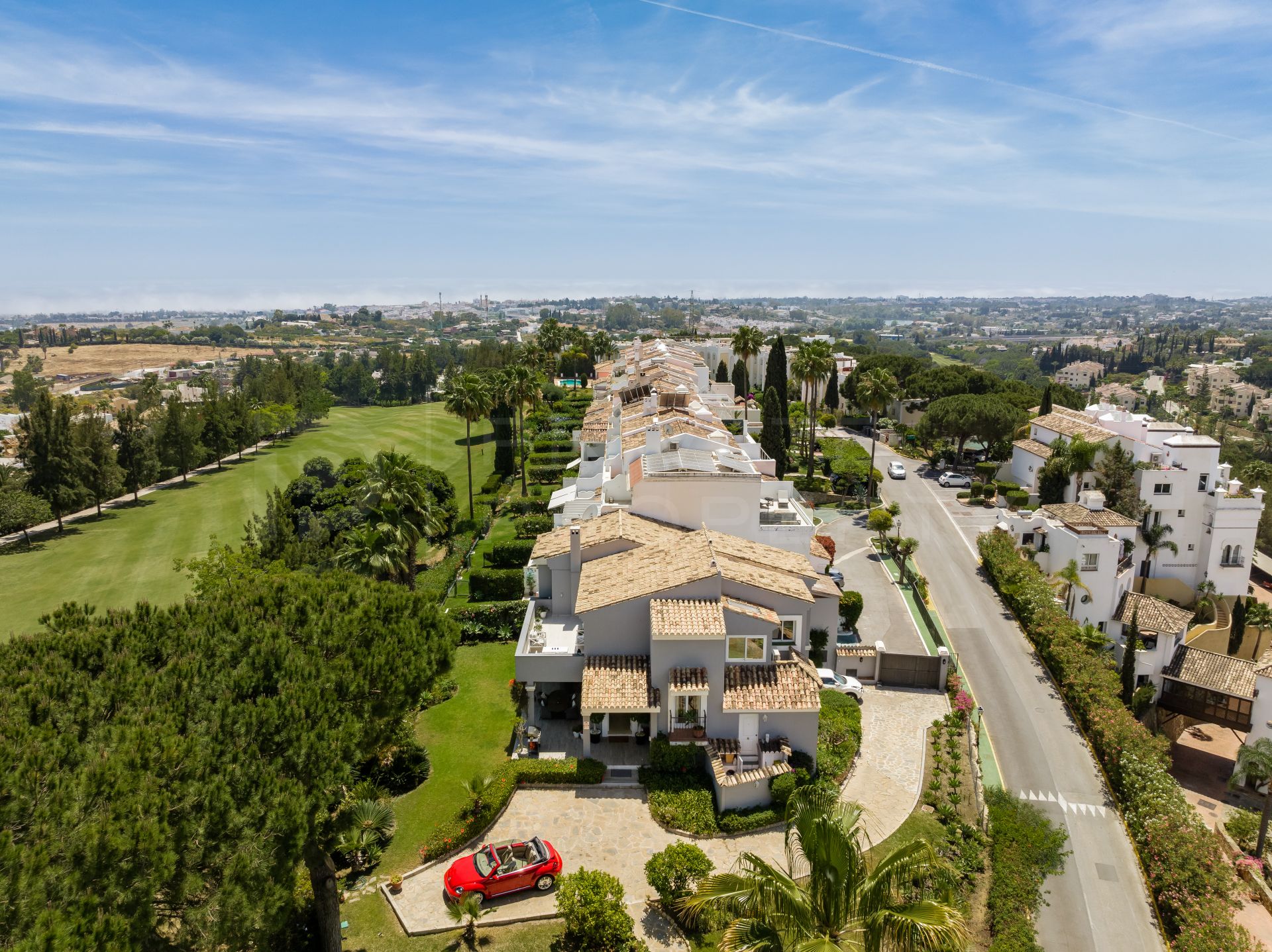 The driveway leads up to the main entrance with an elegant double entrance door which opens in to a good size hall with double doors leading to the spacious reception area which has been divided into a formal drawing room, television/sitting area and a good sized dining room which accesses a recently renovated fully fitted modern kitchen with an adjoining large utility room. The ground floors gives access to two large covered terraces enjoying panoramic views across the golf and towards La Concha as well as towards the Ronda mountains.