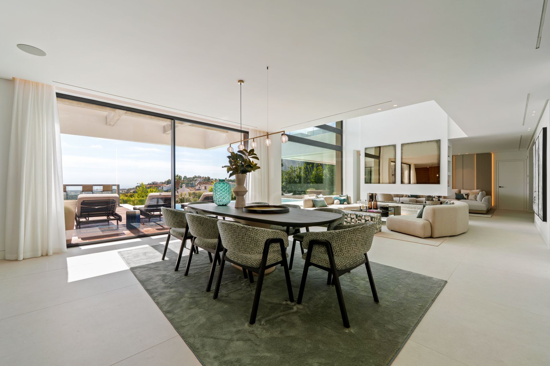 La Quinta 20 is a contemporary six-bedroom residence set on a 1,515 m² plot within the prestigious gated community of Lomas de La Quinta, in Benahavís. Designed with architectural precision and a strong emphasis on functionality, the property maximizes space, natural light, and panoramic views across the surrounding landscape. Its elevated position ensures privacy while offering uninterrupted vistas of the Mediterranean Sea and the surrounding mountains.