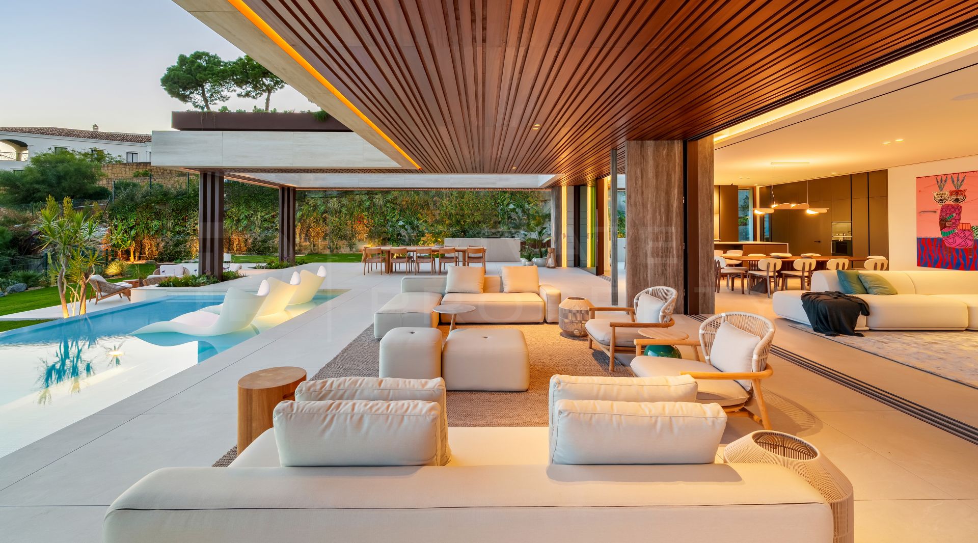 The villas flow seamlessly toward large terraces and a private pool, creating a living experience centered around the Mediterranean lifestyle. High‑end materials and finishes curated by renowned firm Gunni & Trentino enhance each space with exceptional craftsmanship and refined textures. The result is a residence where design and nature coexist harmoniously in an atmosphere of quiet luxury.