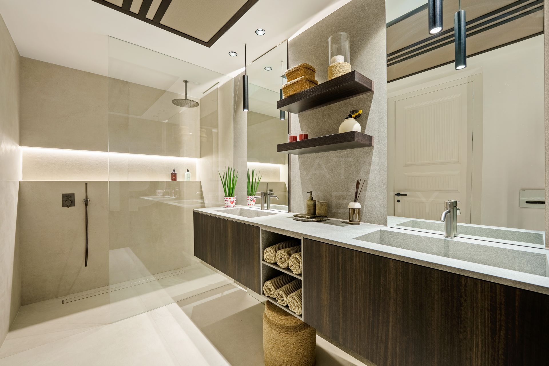 The first floor comprises an elegantly appointed master bedroom with en suite bathroom, dressing area and private terrace, two further bedrooms which share a bathroom and terrace.
