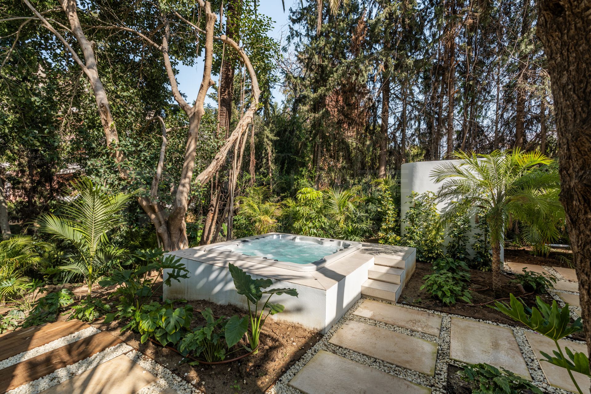 The property offers great privacy and is distributed over 3 floors, comprising: on the ground floor an entrance hall opening to the left into the spacious living room with a fireplace and a guest bedroom with en suite bathroom, and to the right an open-plan fully fitted kitchen with a central island and a dining room, in addition to a guest cloakroom and storage room. The central feature of this floor is the traditional courtyard, flooding all the adjacent spaces with natural light.