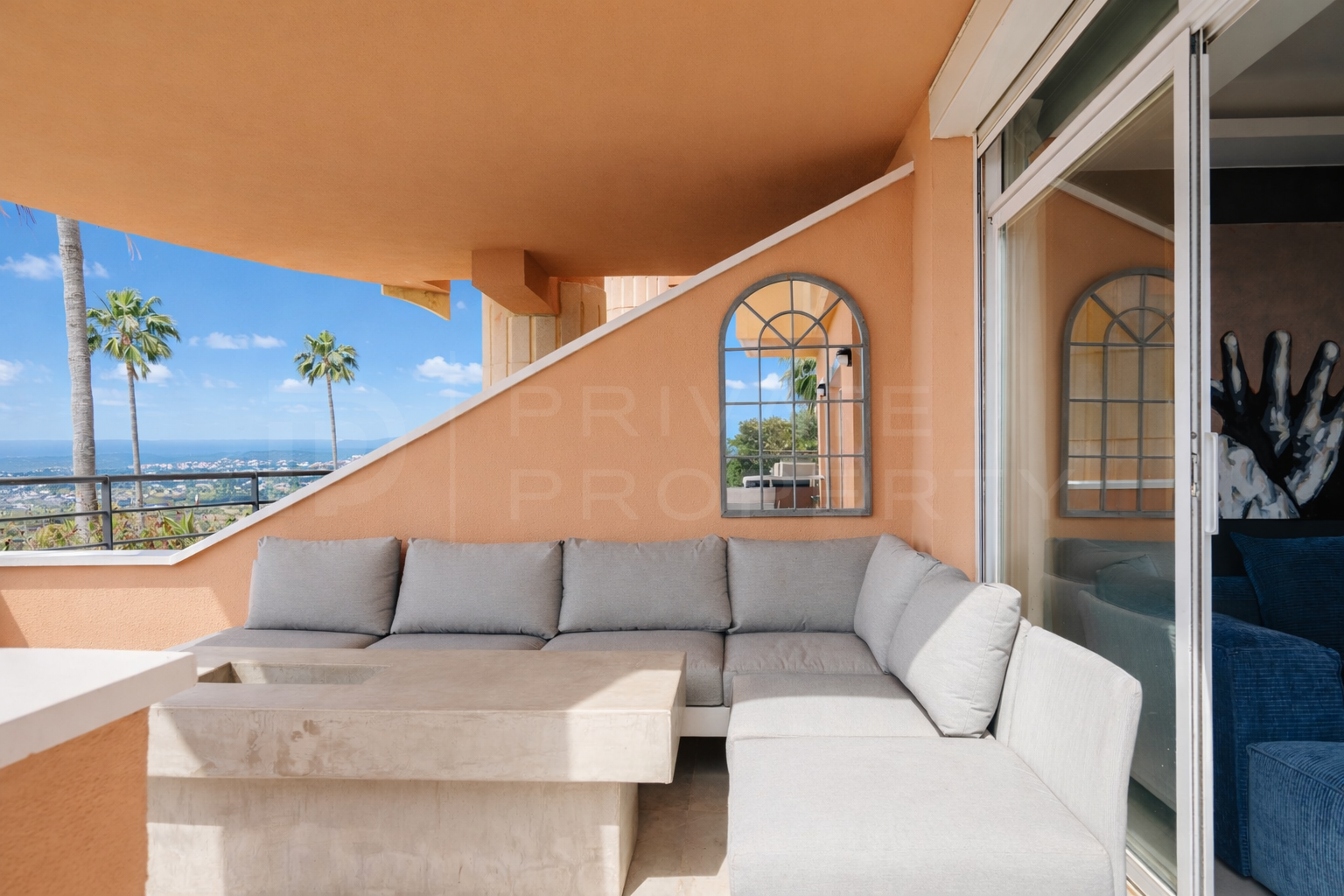 This corner unit enjoys sun throughout the day from morning to evening from its south-west orientation. All bedrooms have direct access to the terrace which features magnificent panoramic views. Two of the bedrooms are en suite and the master bedroom includes a walk-in closet.