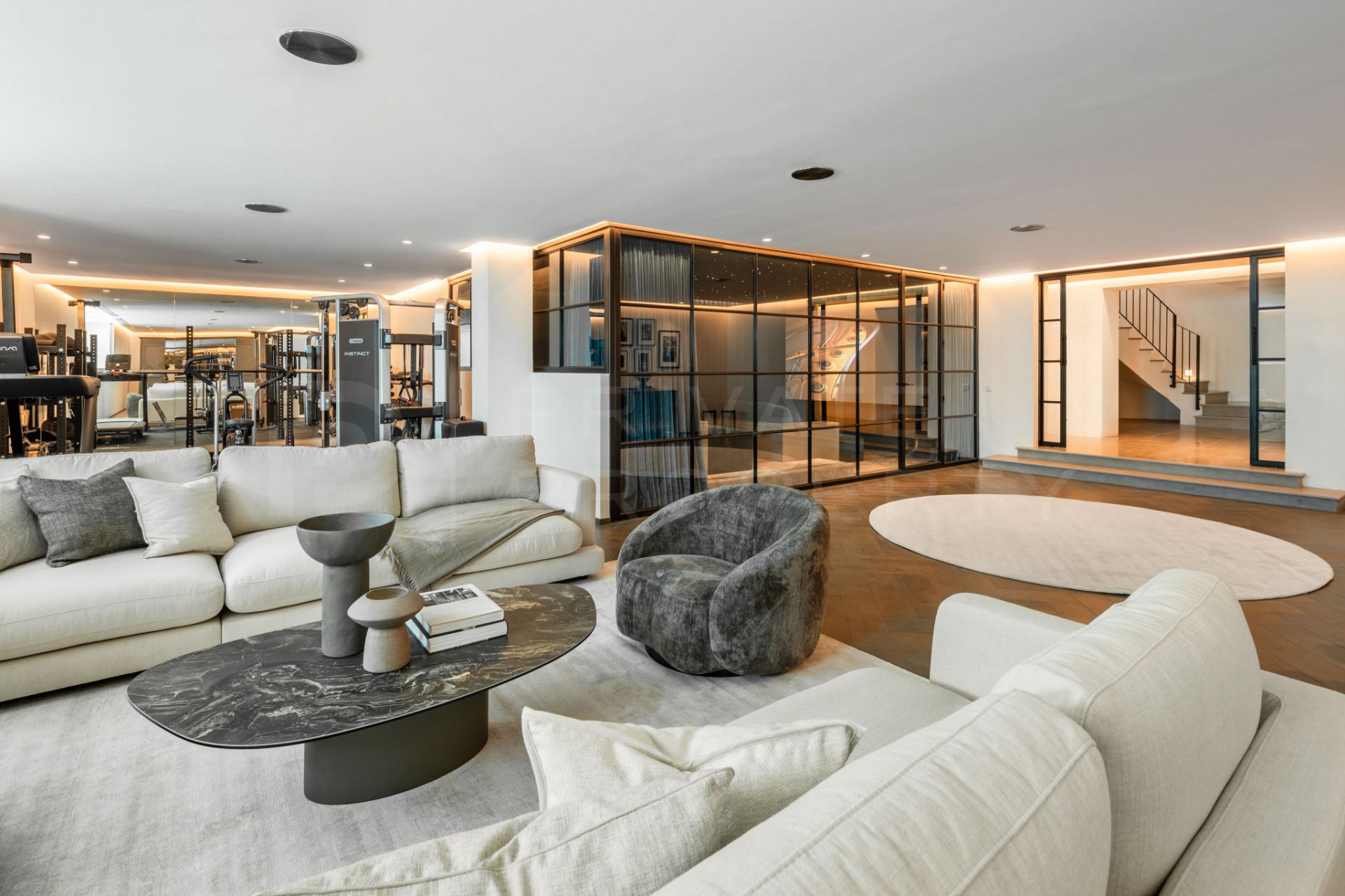 Villa Marbella is designed with a strong emphasis on leisure and well being. A private gym, sauna, and steam room provide an ideal environment for maintaining an active lifestyle at home, while a state-of-the-art cinema room equipped with Bang & Olufsen delivers an exceptional setting for film nights or informal gatherings. A stylish lounge and bar area further enhance the villa’s suitability for entertaining.