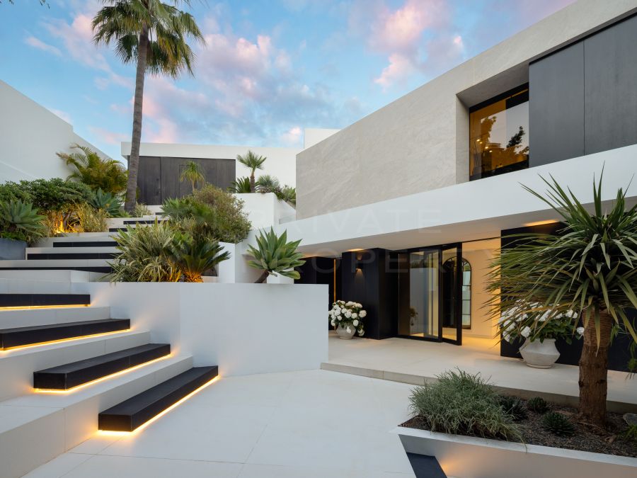 Immaculate brand new contemporary styled home for sale in La Cerquilla, Nueva Andalucia, Marbella. This newly built, due to be completed in summer 2025, impeccably finished villa is surrounded by greenery, has wonderful views to the La Concha mountain and...