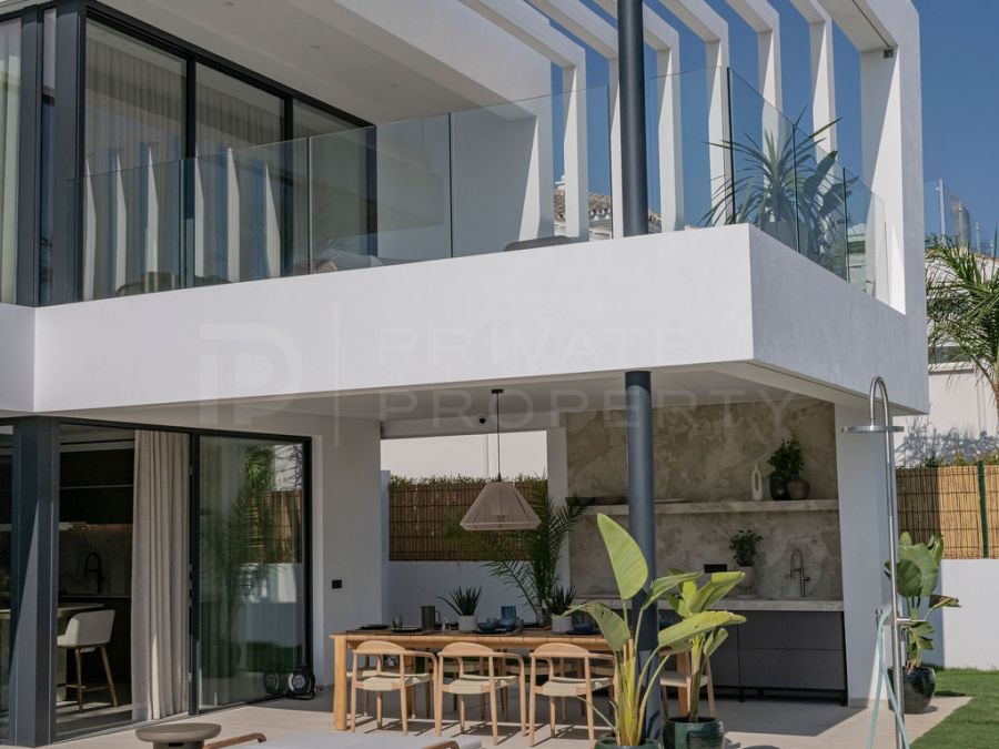 A brand new 4 bedroom, 4 bathroom contemporary villa perfectly positioned within walking distance of the beach, local restaurants and just a short drive from Marbella´s vibrant town centre. The villa´s striking design combines natural stone, wood effect finishes and lush...